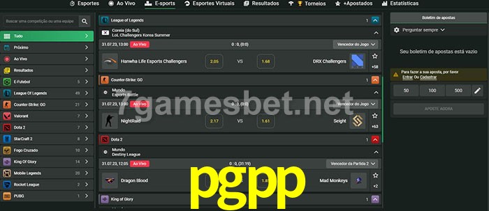 O pgpp oferece uma grande seleção de opções de apostas em e-sports com probabilidades competitivas